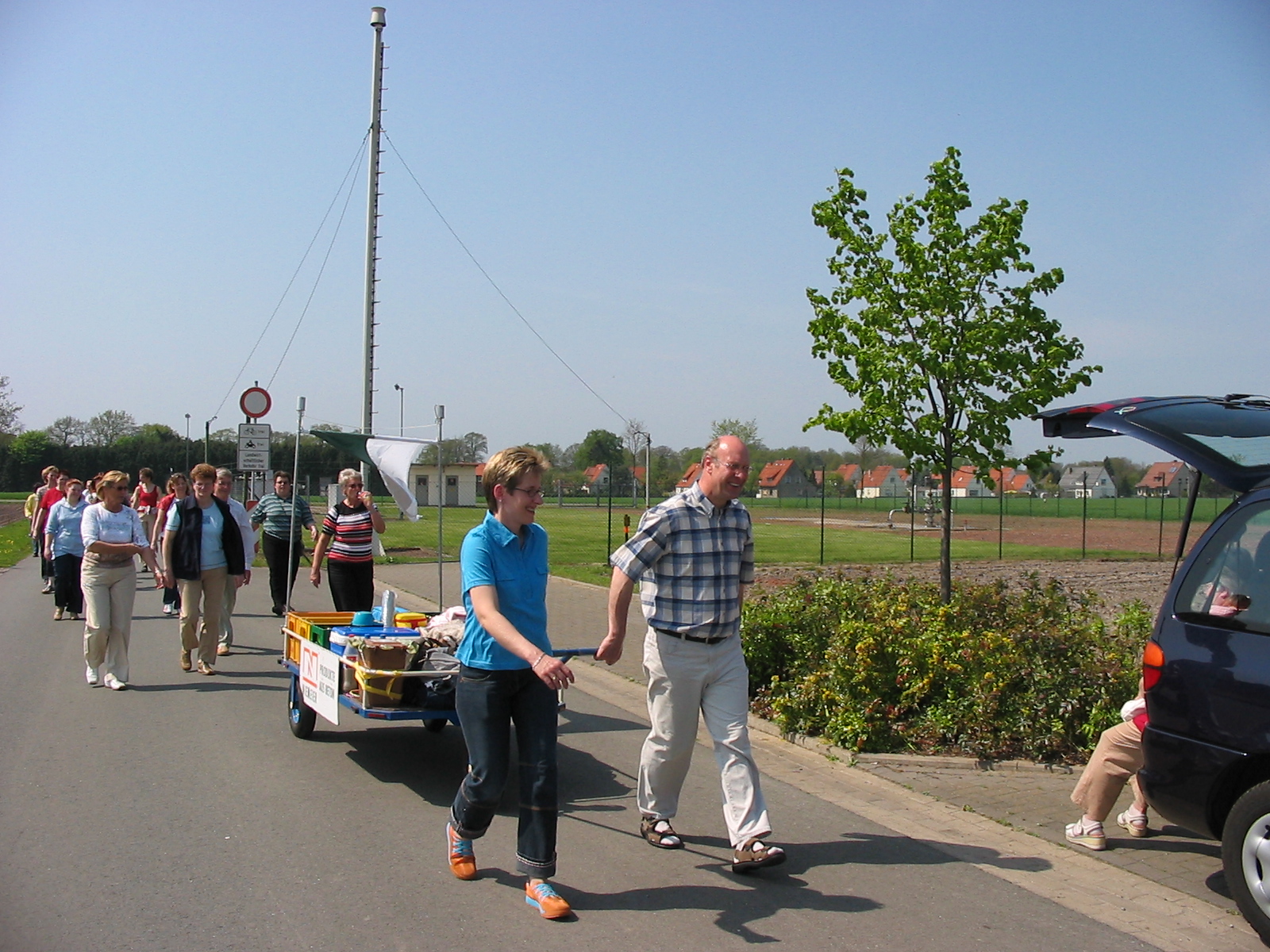 Mit einem Bollerwagen im Schlepptau,der einer Theke glich,wanderten die Damen bis nach Hemsloh,um sich bei Kaffee und Kuchen zu stärken.Als Einlage gab es einen Sketch der Laienspieler aus Rehden und Wetschen.