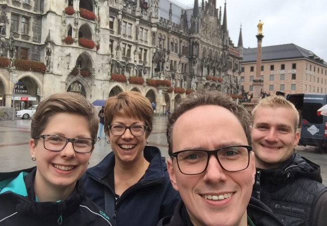 Einen Tag vor ihrem Start am 1. September 2017 war sie mit Mutter Petra, dem 2. Vorsitzenden Tobias Winkelmann-Bünte und dem 1. Jugendwart Sascha Langhorst nach München gereist.
