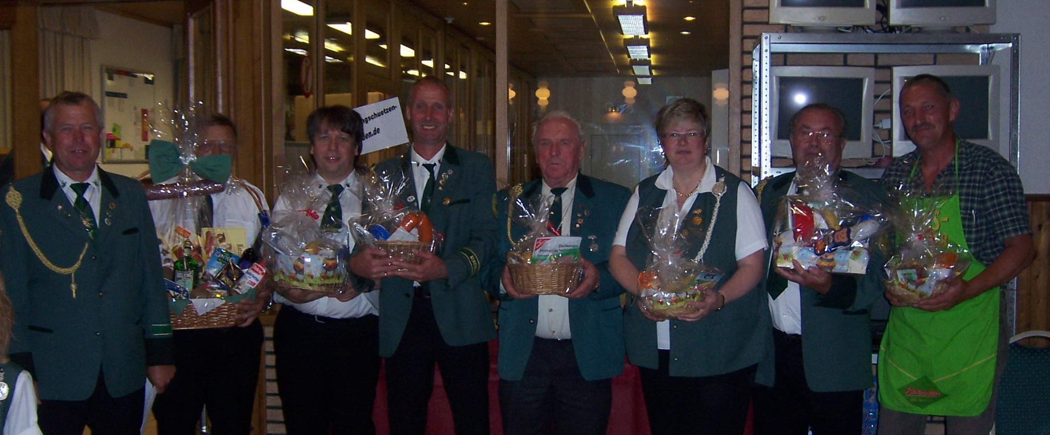 Gegen Ende dieser gelungenen Veranstaltung standen noch die Ergebnisse des Glückschießens aus.Den ersten Preis, einen prall gefüllten Präsentkorb, konnte Heinz Thamm in Empfang nehmen.