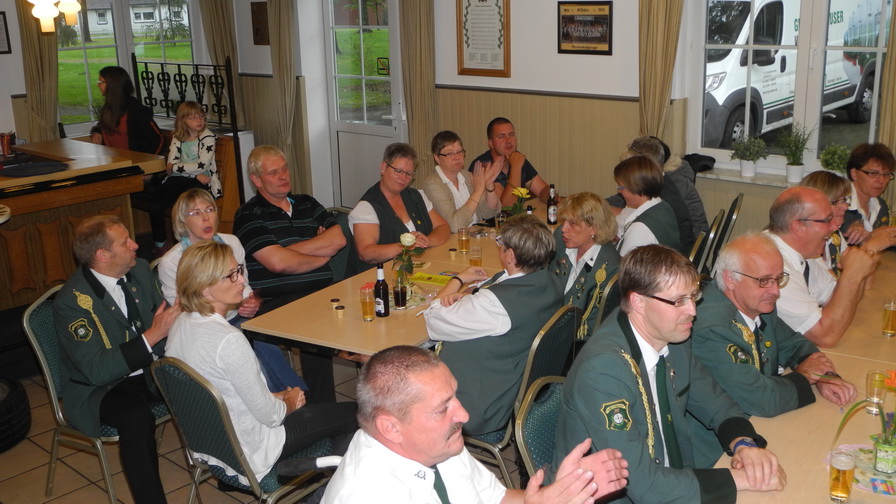Schützenpräsident Thomas Nowak, Ihre Majestäten und der Vorstand erfreuten sich an der Vielzahl der Schützinnen und Schützen die den Weg ins Schützenhaus gefunden haben, um ein paar gesellige Stunden mit einander zu verbringen.
