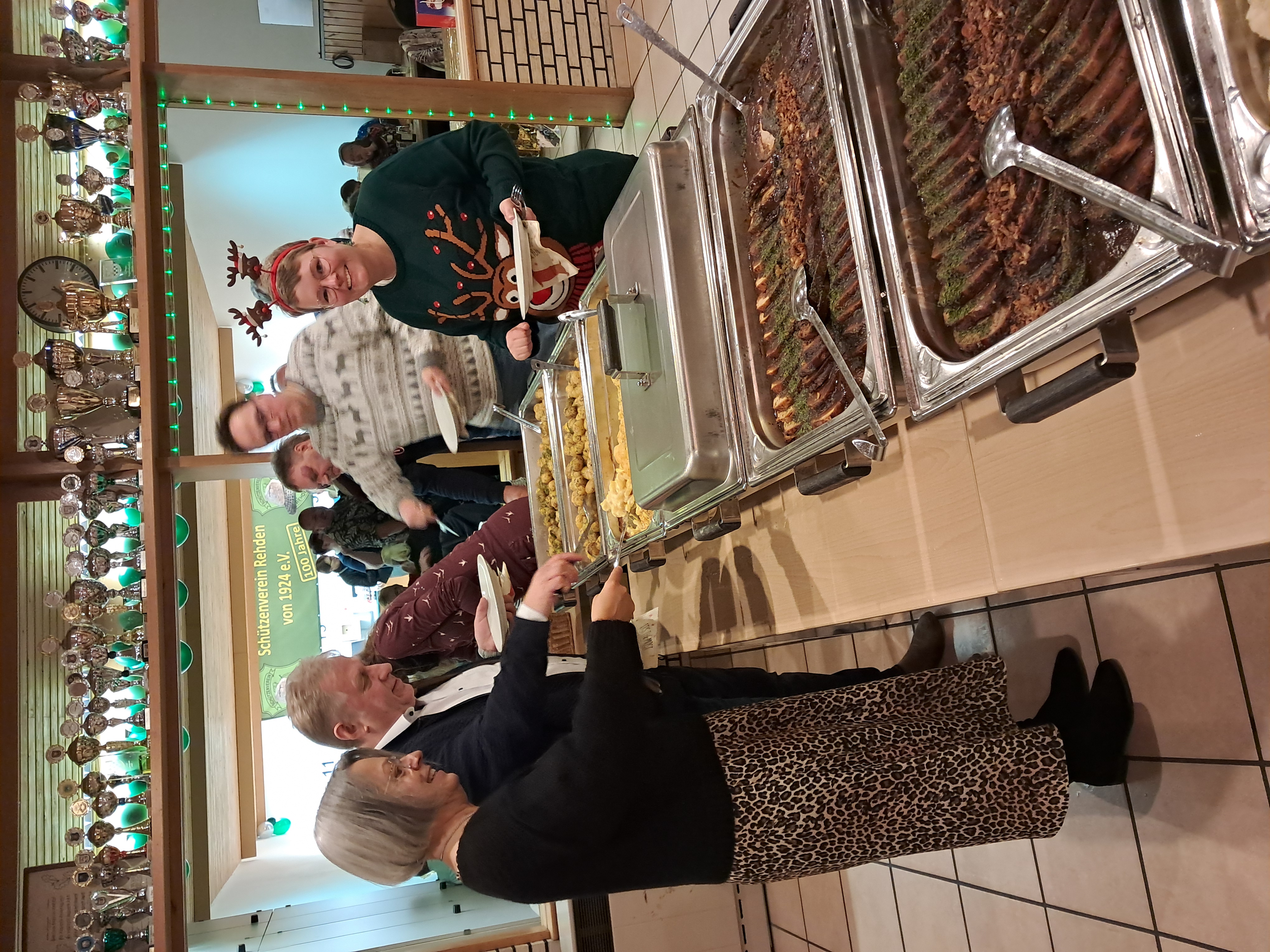 Ein schöner, geschmückter Weihnachtsbaum, der von Schützenbruder Wilhelm Rohlfs gespendet worden war und festlich geschmückte Tische ließen Jung und Alt schnell erahnen, dass die Organisatoren mit viel Liebe zum Detail ihre Aufgabe erfüllt hatten. Auch die selbstgebackenen Plätzchen und andere Leckereien kamen an diesem Abend sehr gut an.