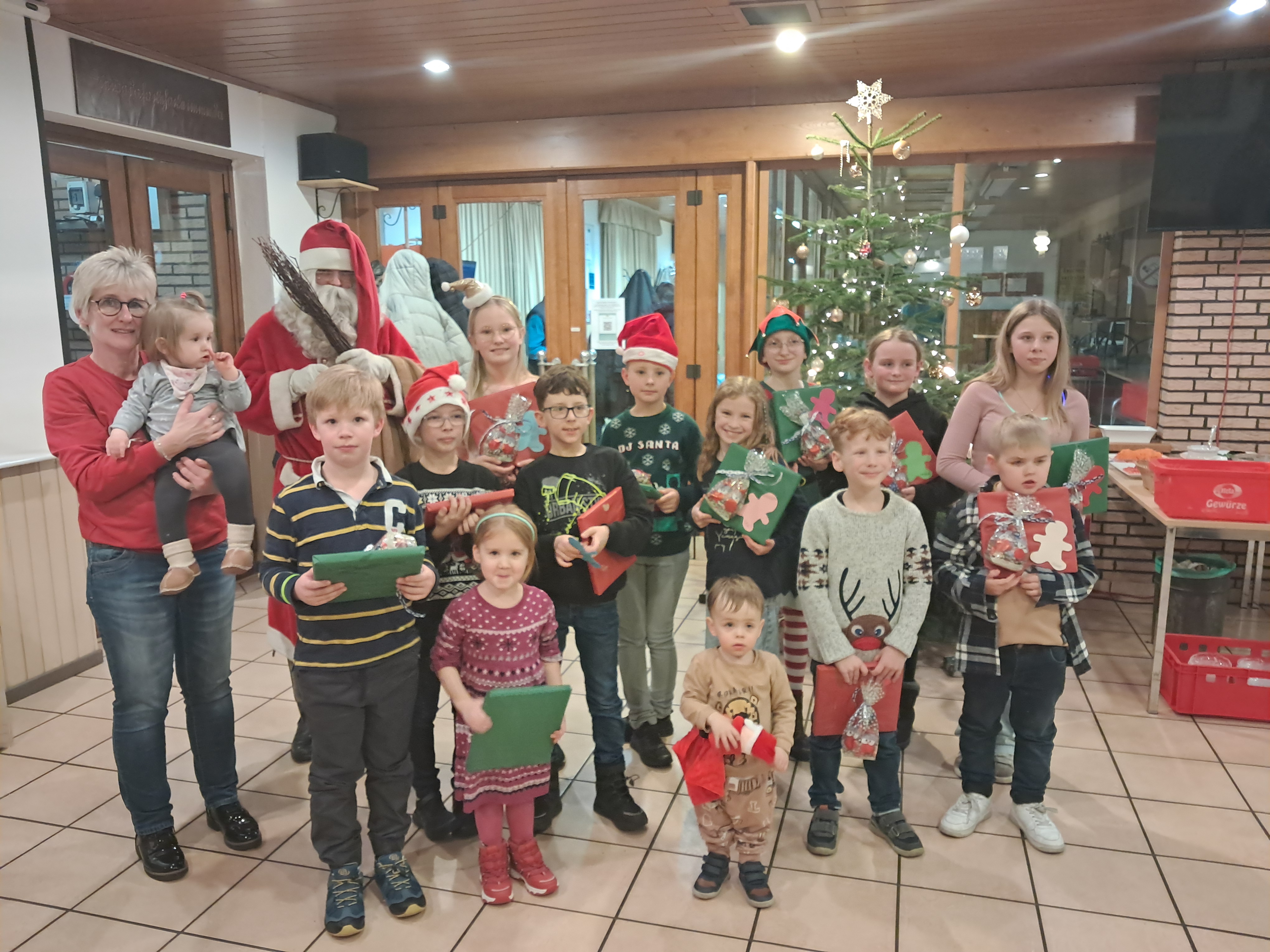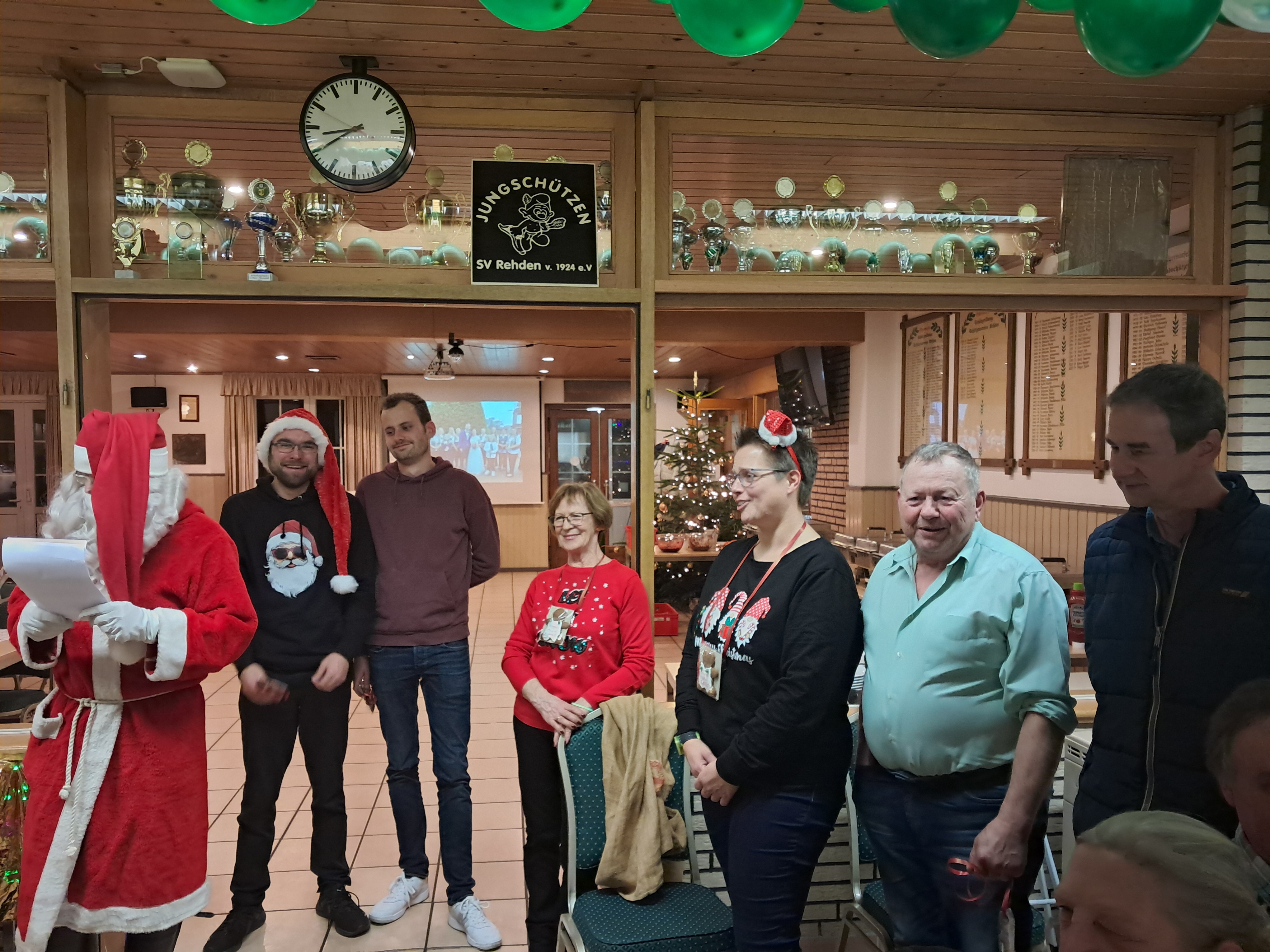 Nach der guten Stärkung folgte der nächste Höhepunkt des Abends, bei dem es vor allem für die Kleinsten noch einmal aufregend wurde, denn der Weihnachtsmann besuchte das Rehdener Schützenhaus. Doch so ohne weiteres wollte er die Geschenke nicht herausrücken. Nach einigen Liedern und passenden Worten für jedes einzelne Kind konnten aber dann doch die Geschenke übergeben werden.